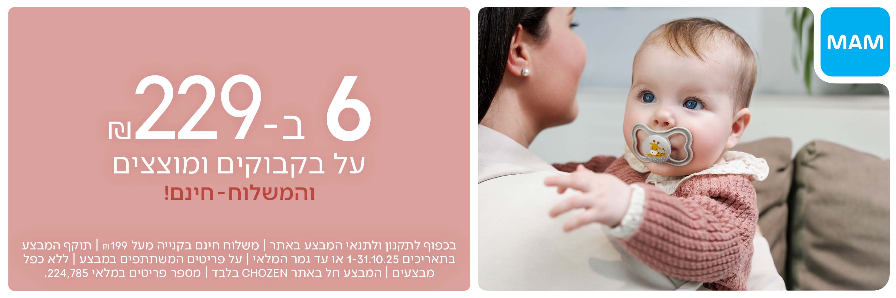 באתר CHOZEN תוכלו למצוא בקבוקים לתינוקות של המותג MAM, מותג בינלאומי מוביל שמתמחה בפיתוח מוצרים חדשניים ובטוחים לתינוקות. הבקבוקים של MAM ידועים בעיצובם הארגונומי, בחומרים איכותיים ובפטמות רכות המסייעות לתינוקות לשתות בנוחות מרבית. בין הדגמים שתמצאו: בקבוק אנטי-קוליק להפחתת גזים, בקבוק אימון עם ידיות שמתאים לשלב שבו התינוק מתחיל להחזיק לבד, הכוס הראשונה שלי ללימוד שתייה עצמאית, כוס ספורט לפעוטות שנמצאים בתנועה ובקבוק זכוכית למי שמעדיף מגע טבעי וללא פלסטיק.
