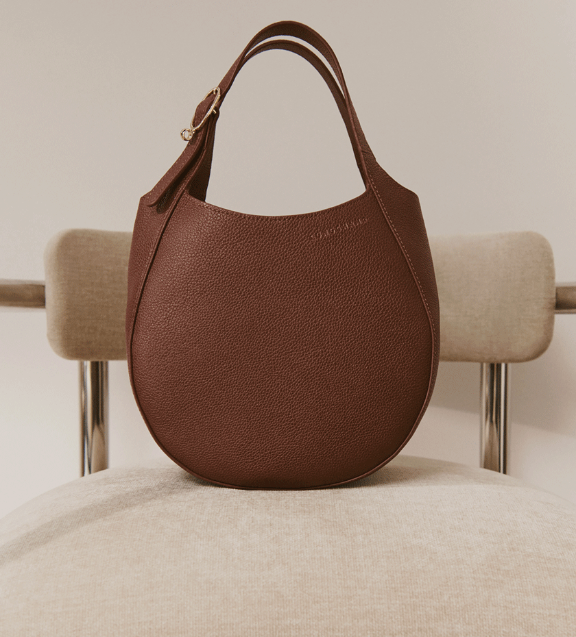 לונגשאמפ תיק צד בינוני מעור Le Foulonné חום כהה