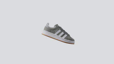 אדידס סניקרס CAMPUS 00S לילדים, נעל צ'אנקית בצבע אפור, בסגירת שרוכים אלסטיים לנעילה נוחה, עם פסי המותג האייקונים בצבע לבן משני צידי הנעל וסוליה עבה.