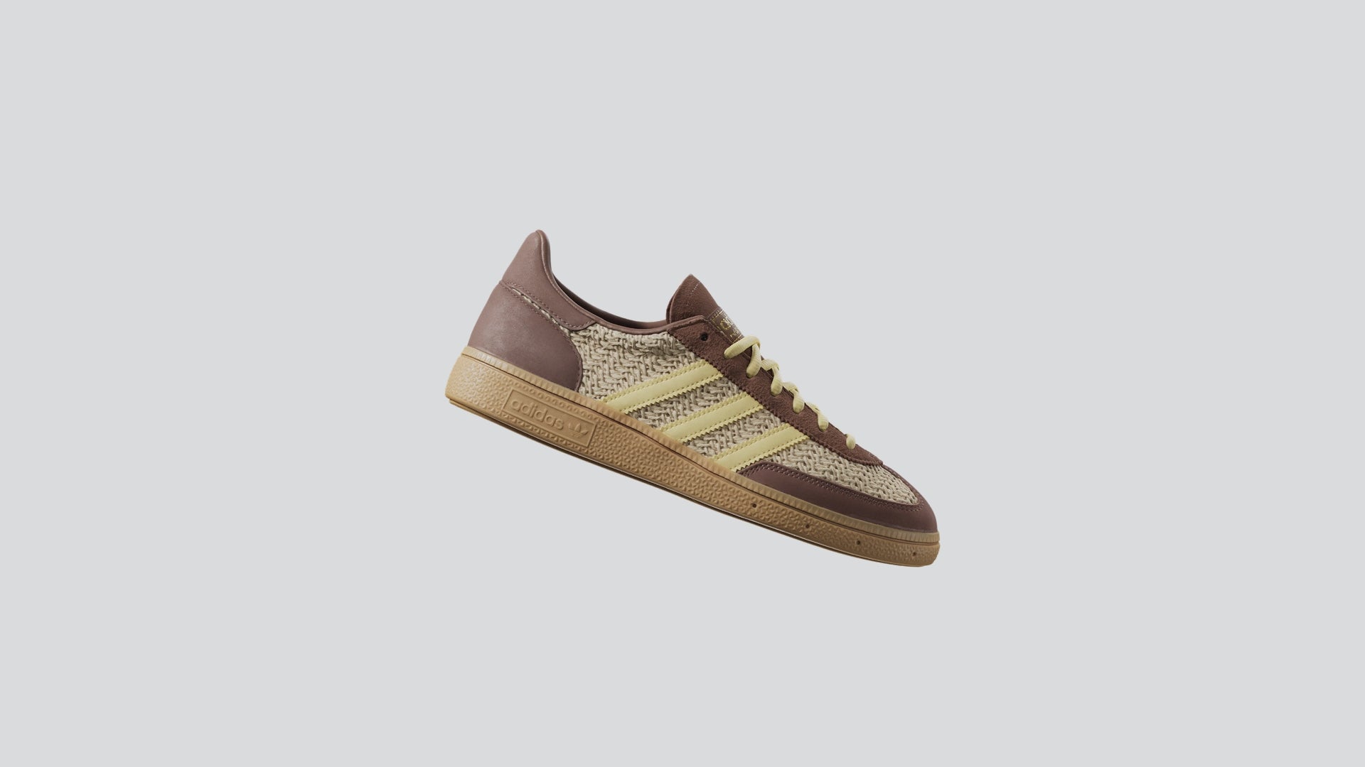 אדידס סניקרס SPEZIAL לנשים, בצבע חום עשויים מעור וטקסטיל בשילוב בד סרוג, עם פסי המותג האייקונים בצבע צהוב משני צידי הנעל, בשילוב סוליה בצבע חום ובסגירת שרוכים בצבע צהוב.