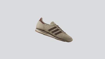 אדידס סניקרס SL 72 OG לנשים בצבעי שמנת וחום, בטקסטורה סרוגה ובגזרה ספורטיבית, בשילוב שרוכים בצבע חום ופסי המותג האייקונים בצבע שמנת משני צידי הנעל, עם סולייה עבה ומרופדת.