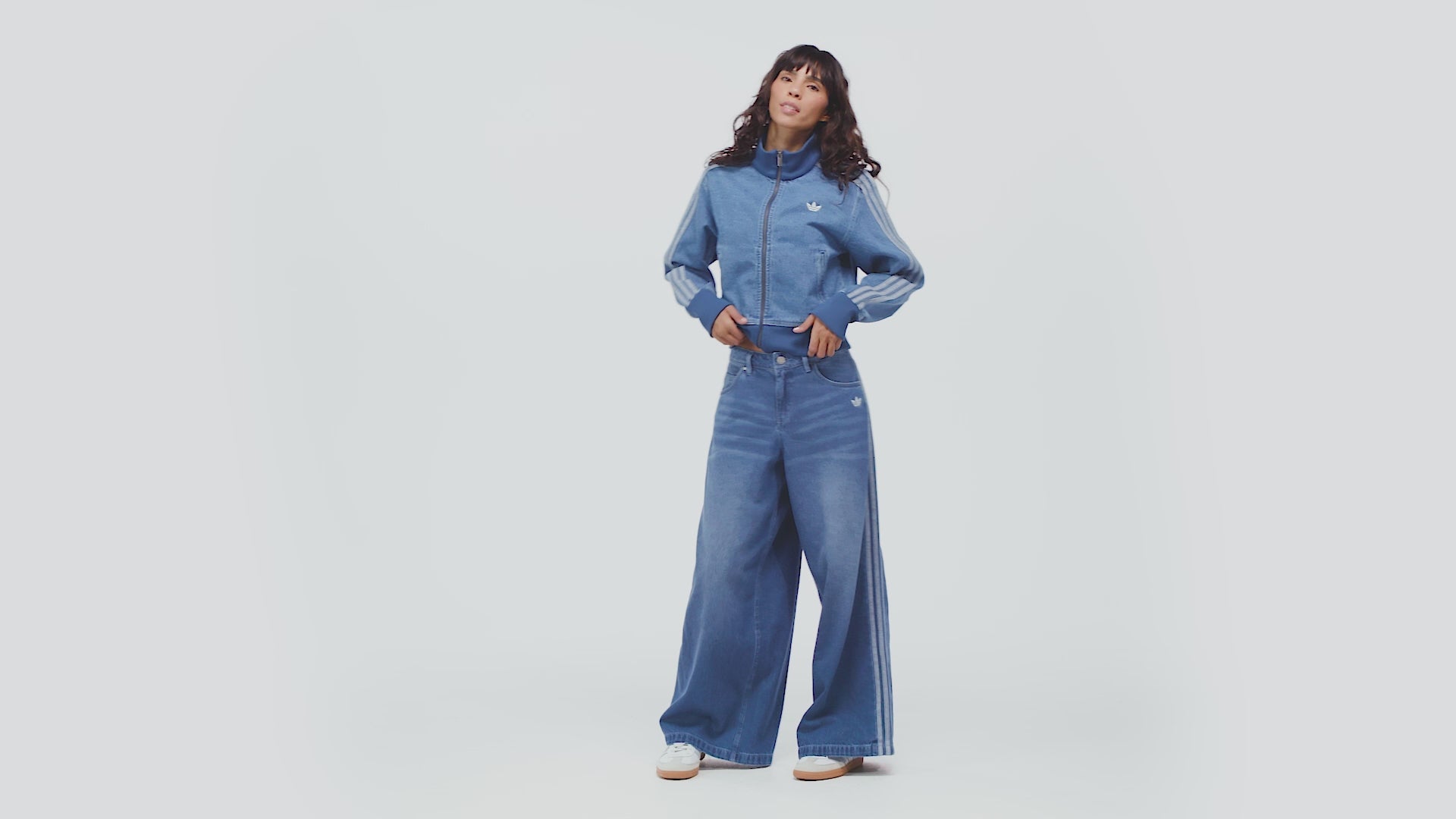 אדידס ג'ינס מתרחב ADICOLOR לנשים, עשויים 100% כותנה בצבע כחול כהה, בגזרה משוחררת המתרחבת בסיומת, עם שני כיסים קדמיים ואחוריים בשילוב פסי ולוגו המותג בצידי המכנס, עם מקום לחגורה בסגירת כפתור ורוכסן.